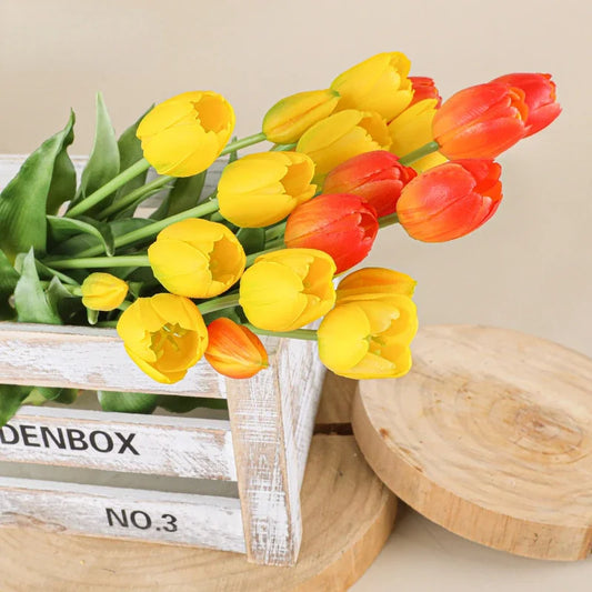 5 Head Artificial Tulips Wedding Home Decoration Simulation Flowers 3 Flowers 2 Buds Soft Plastic Tulips Feel Tulip Bouquet