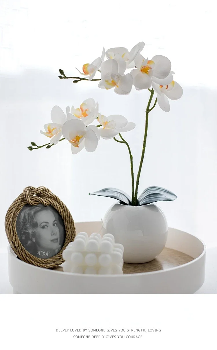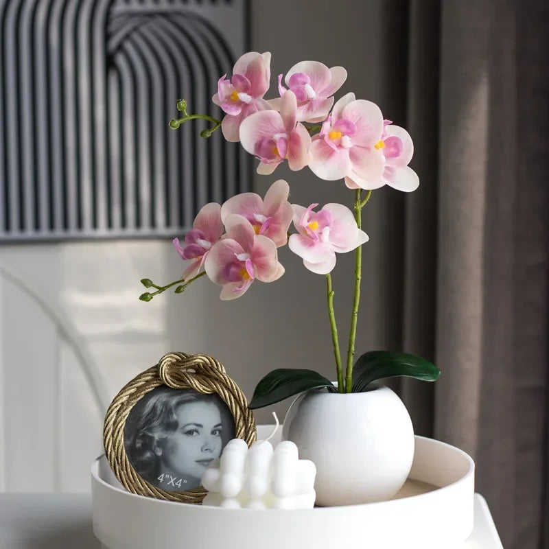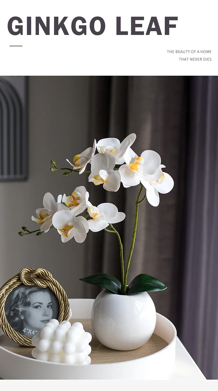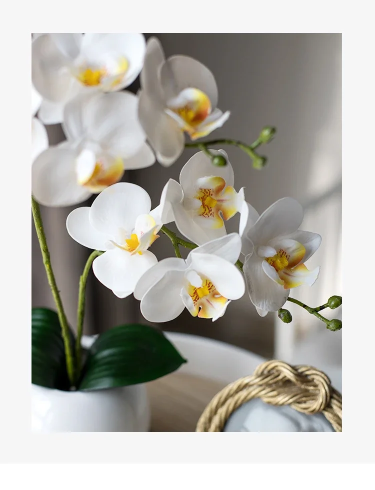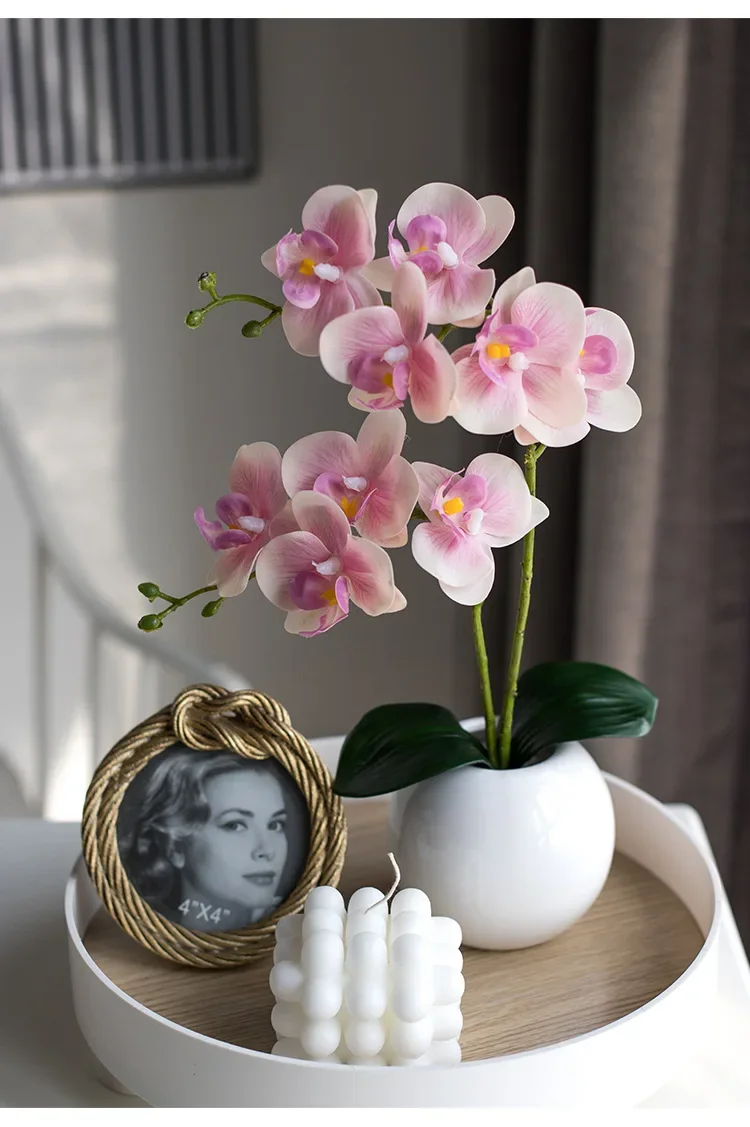 46CM Two Branched Phalaenopsis with Leaves Simulation Flower Artificial Realistic Orchid Flower Soft PVC Home Vase Decoration