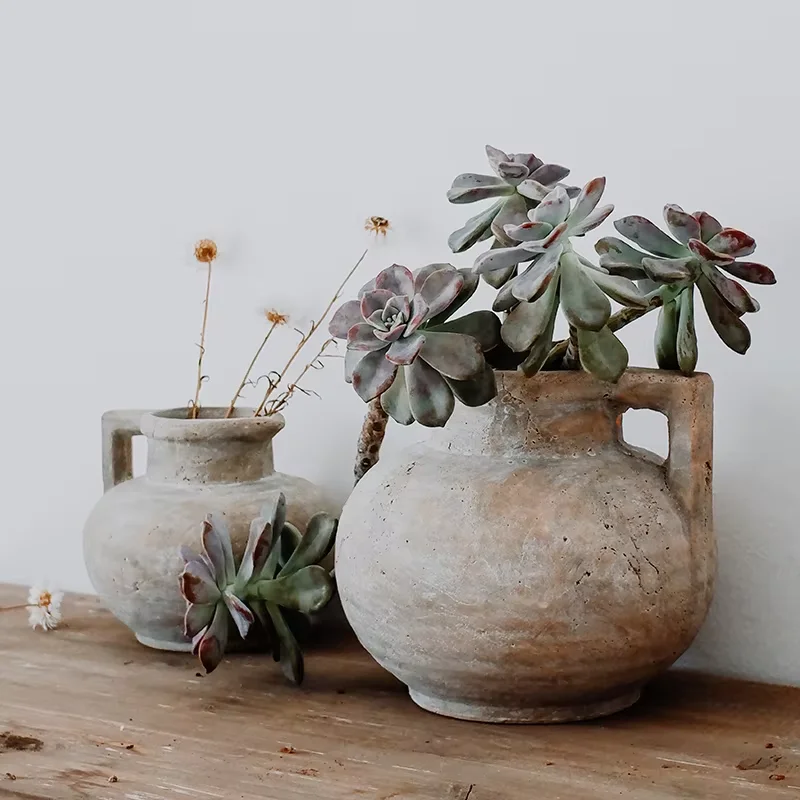 Rustic Farmhouse Terracotta Vase with Handle